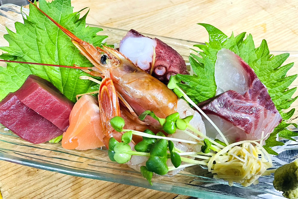 海の幸を自分で釣った食材を使用することも多いです。 |