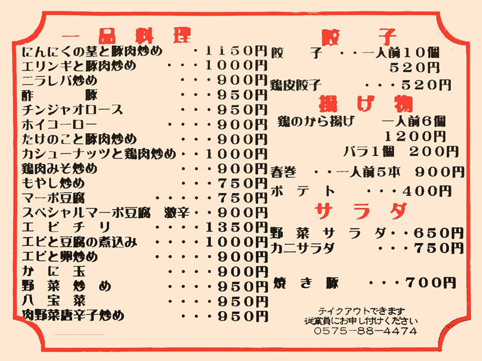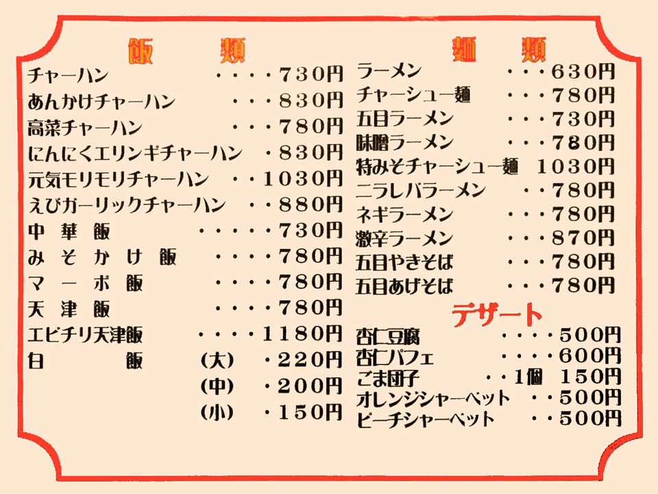 | ※2024年5月の内容です。メニュー、値段等が変わる場合がございます。 |