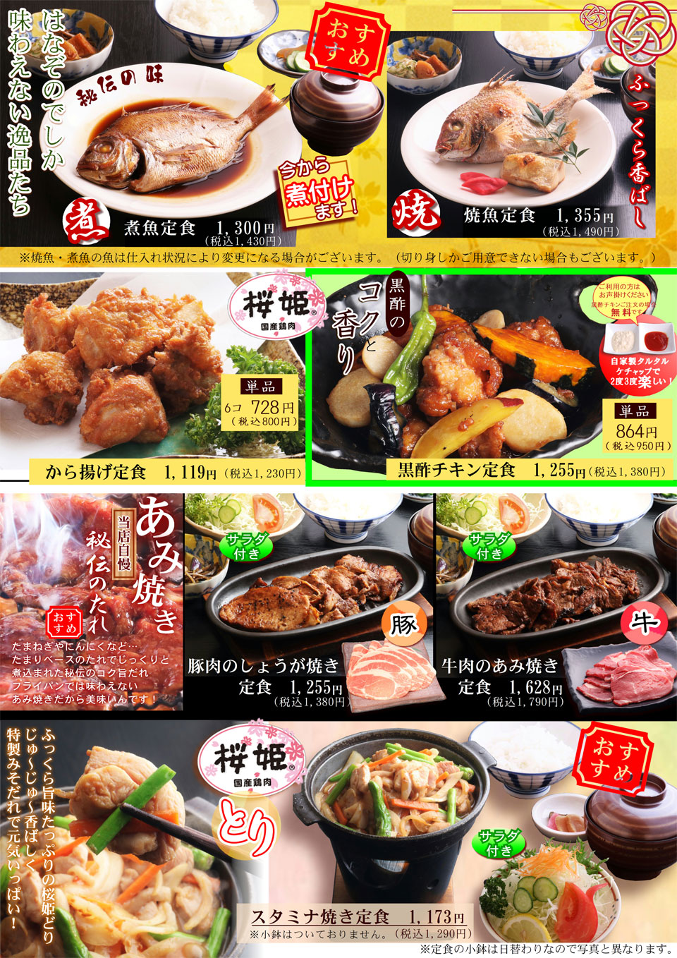 ・定食、サービス品、お席のみ(来られてからのご注文)での
