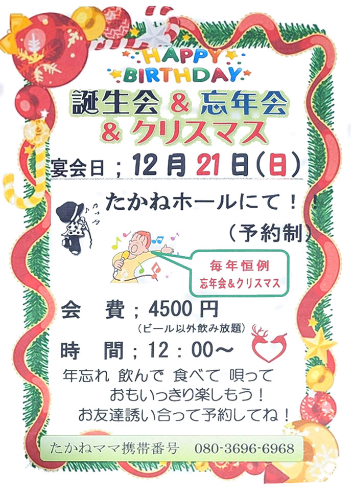 月、木、土はカラオケ 13:00〜17:00 |