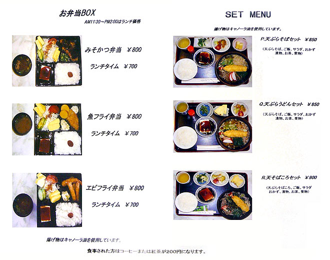 | ※メニュー、料金は以前の内容です。更新まで参考としてください。 |