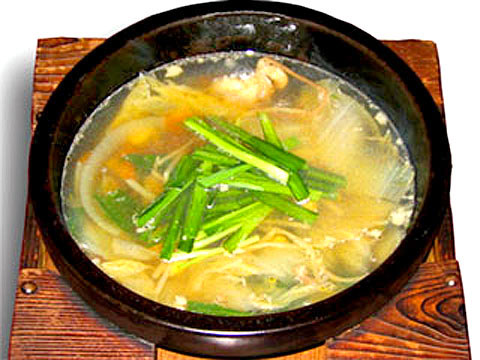 | 石鍋で提供するあつあつの美味しいスープ。お値打ちで好評です。 |
