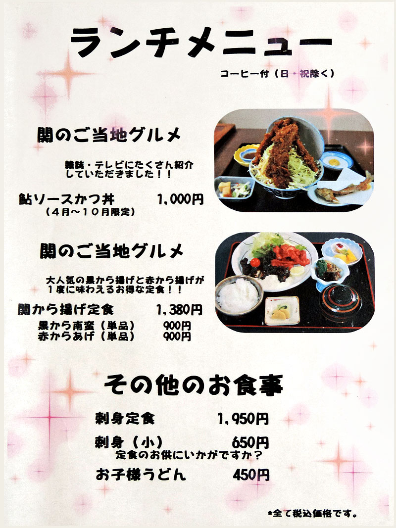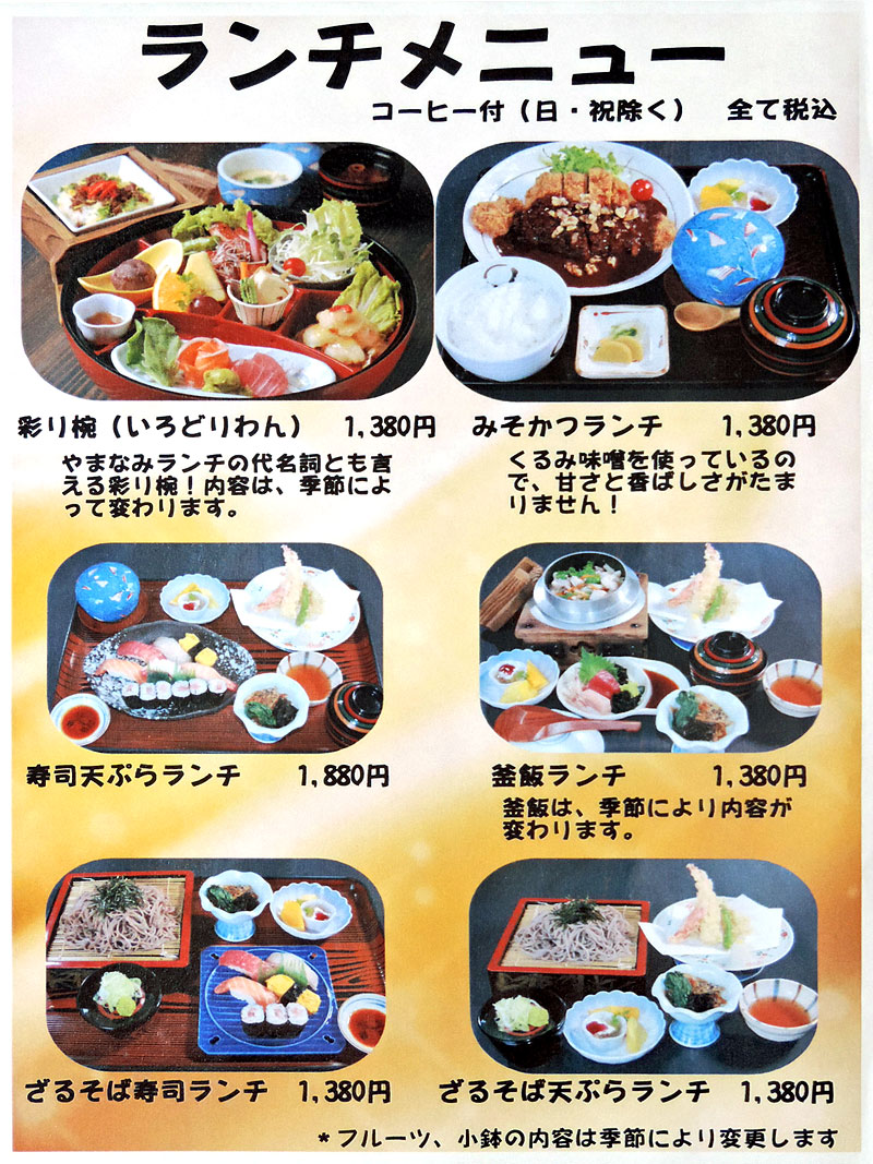 | ※メニュー、料金は以前の内容です。更新まで参考としてください。 |