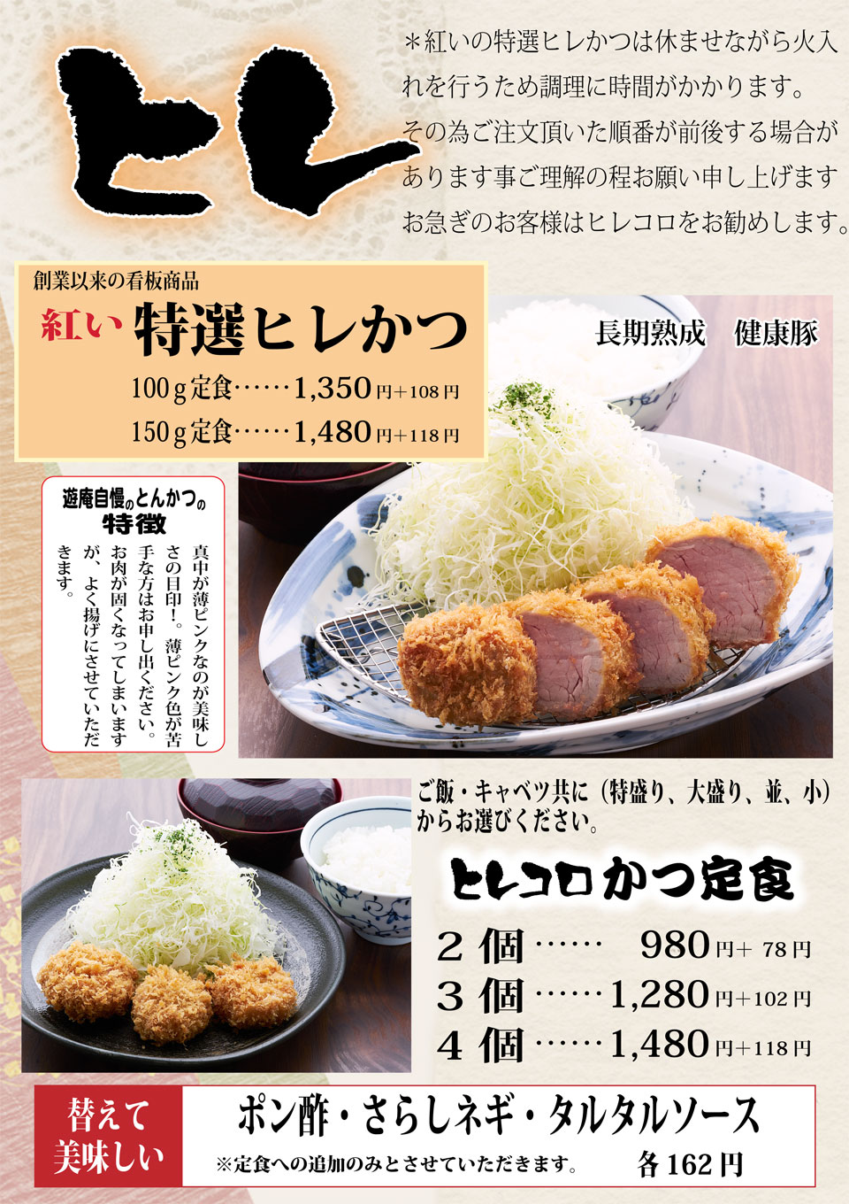| とんかつ弁当など配達好評。宴会各種コースもどうぞ! |